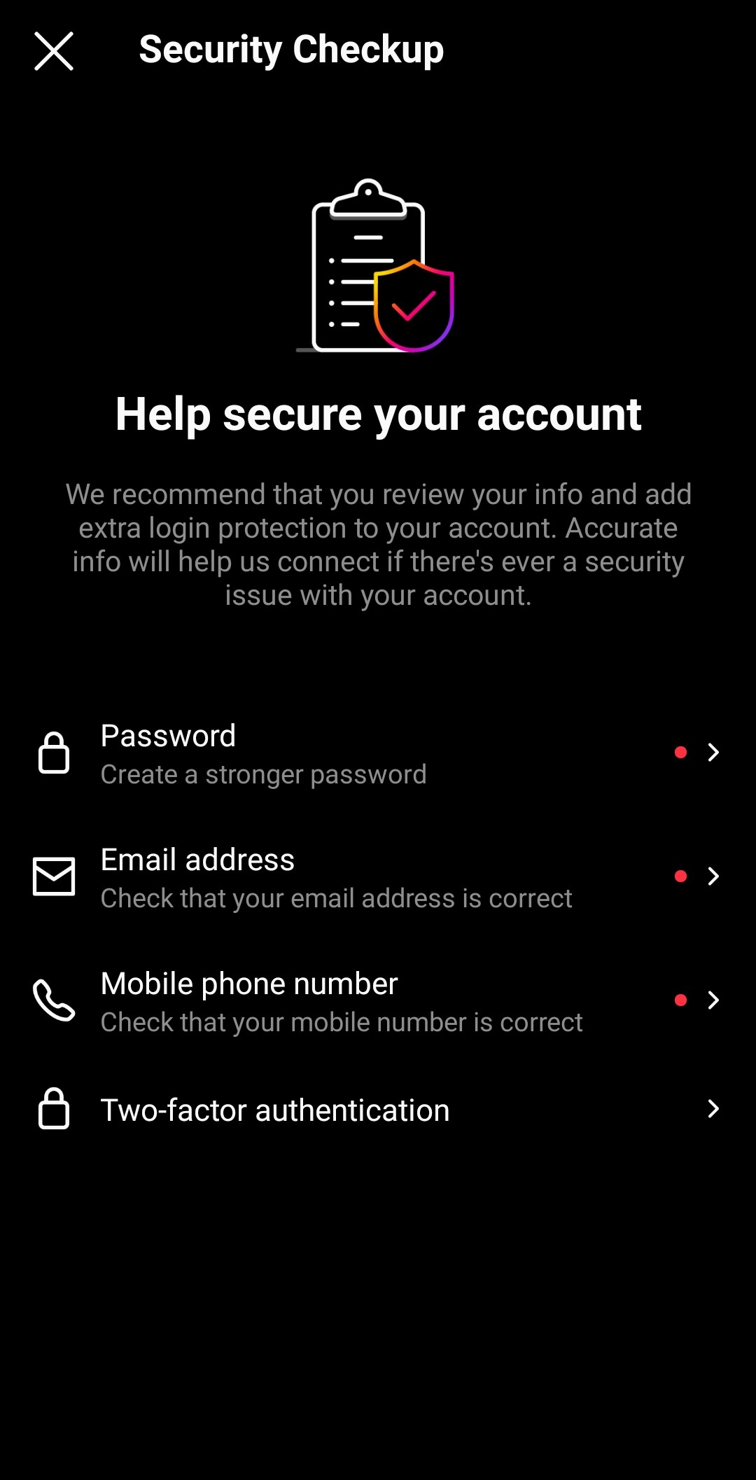 2. Awesome! Now that you're at Security Checkup, take note of the following inorder to properly use this Instagram feature: